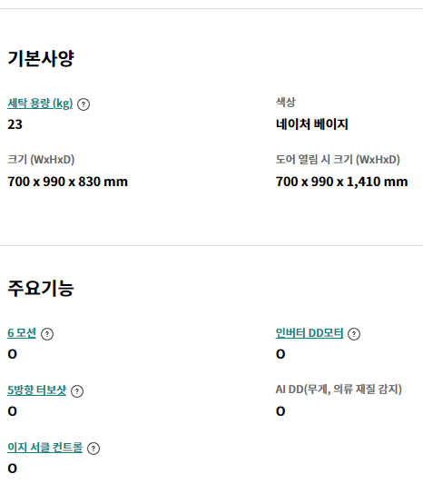 * 인공지능세탁 코스는 최대용량 6kg 이하에서 동작하며, 실사용 환경 및 세탁물 종류에 따라 다를 수 있습니다.