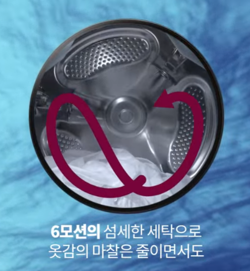 환경까지 생각한 미세플라스틱 저감 세탁으로 6모션 중 옷감 마찰을 줄이는 흔들기, 비비기, 주무르기 모션과 강력한 5방향 터보샷이옷감 손상과 미세플라스틱 배출을 70% 줄여주고 에너지 사용량도 30% 줄여줍니다.