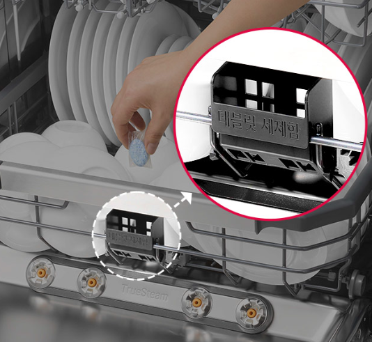 태블릿 세제를 더 편하게 태블릿 세제함 사용 시 식기세척기에 세제를 더 편하게 넣을 수 있습니다.