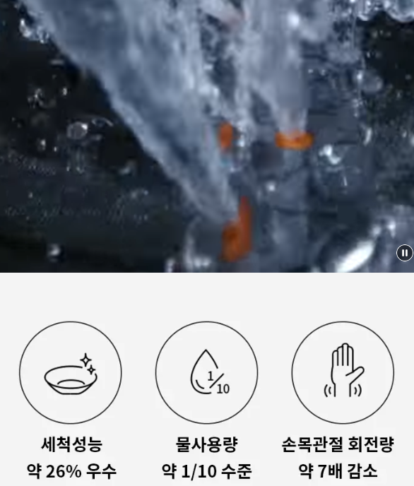 일시정지 버튼으로 놓친 설거지도 물 튐 없이 추가 깜빡하고 놓친 설거지도 일시정지 버튼을 누르면 작동이 멈춰 물 튈 걱정 없이 추가할 수 있습니다.