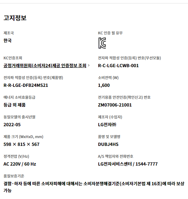 LG 디오스 오브제컬렉션 식기세척기 DUBJ4HS 상세 스펙
