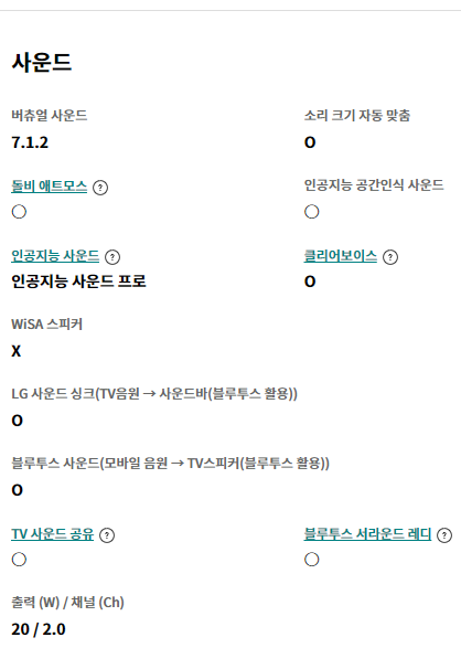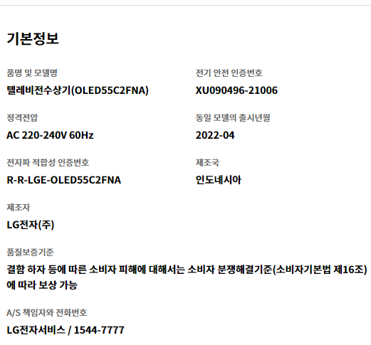 LG 올레드 evo (스탠드형) OLED55C2FNA 상세 스펙