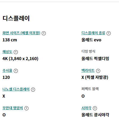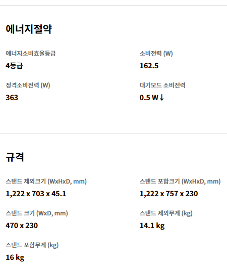 - 화면 사이즈 (베젤 미포함) : 138 cm