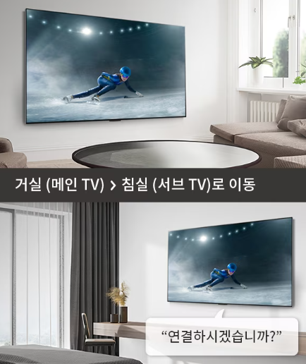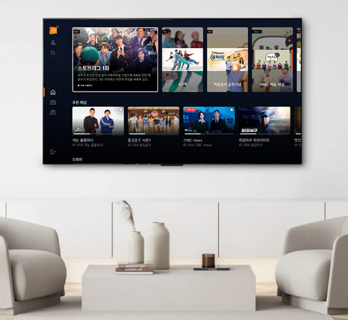 지금 보고 계시는 TV 영상을 같은 네트워크에 연결된 다른 TV에서도 바로 보실 수 있습니다. TV마다 따로따로 IPTV에 가입하거나 안테나를 연결하지 않아도 되니까 경제적이고 편리합니다.