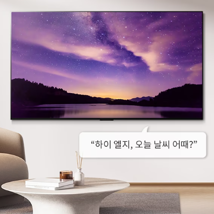 TV를 보지 않을 때 AI 스피커처럼 사용할 수 있습니다. 화면을 꺼두어도 되고 예술작품, 영상, 시계, 음악, 사진 중 원하는 화면으로 설정 가능합니다.