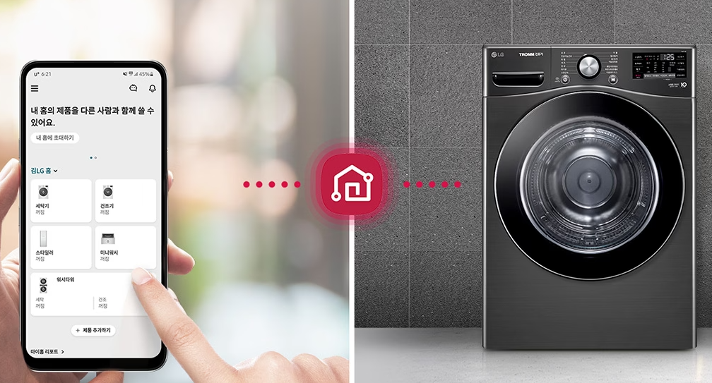 LG 트롬 세탁기를 함께 사용 중이시라면 진행 중인 세탁 정보가 그대로 공유됩니다.