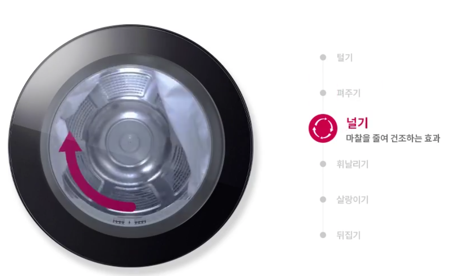 건조기 최초로 탑재한 6모션으로 옷감의 낙차로 인한 자극을 줄여주고