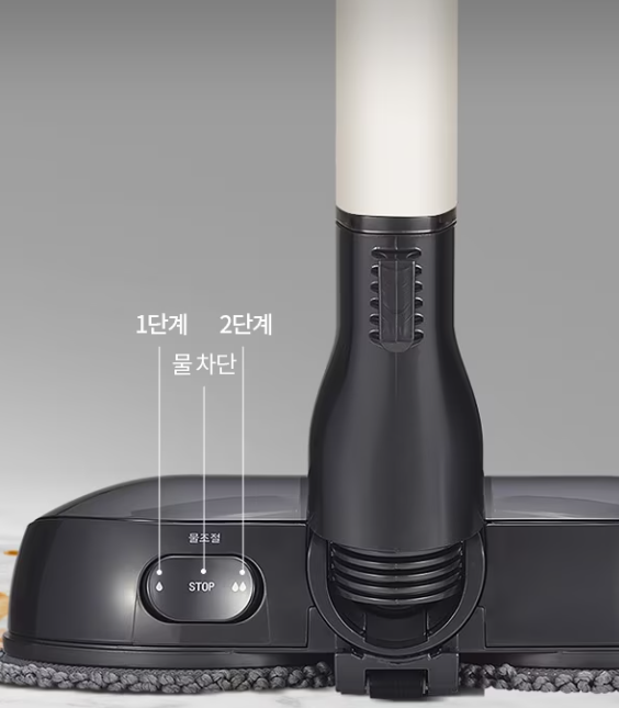 3단계 물 분사 조절 버튼으로 걸레에 유입되는 수분량을조절할 수 있어 바닥 소재, 오염 상태에 따라맞춤 청소가 가능합니다.