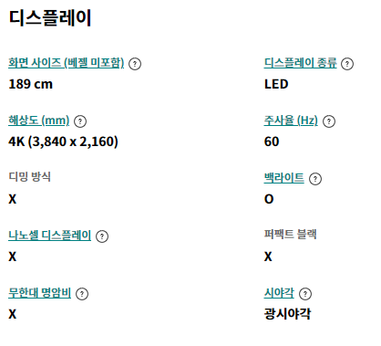 디스플레이, 화질, 디자인, 게이밍, 스마트, 사운드, 부가기능, 입출력, 에너지절약, 규격 등의 상세 스펙을 확인하세요.