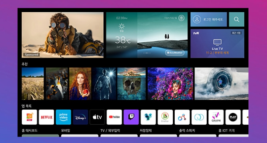 쉽게 찾고 바로 보는 TV 이상의 즐거움을 제공해드립니다. LG 채널, 넷플릭스, 왓챠, 유튜브 등 다양한 앱을바로 실행하고 지금 인기 있는 콘텐츠, 날씨, 가전 상태까지 한눈에 확인할 수 있어TV 이상의 즐거움을 드립니다.