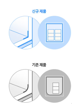 둥글었던 제품 안쪽 모서리를 플랫하게 변경해 라인이 더욱 깔끔하고 견고해진 인테리어를 완성했습니다.