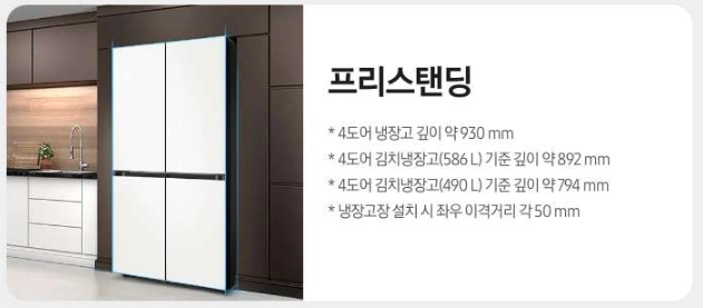 BESPOKE 냉장고 4도어 키친핏 615 L (UV탈취) RF60C9012AP01 상세 스펙