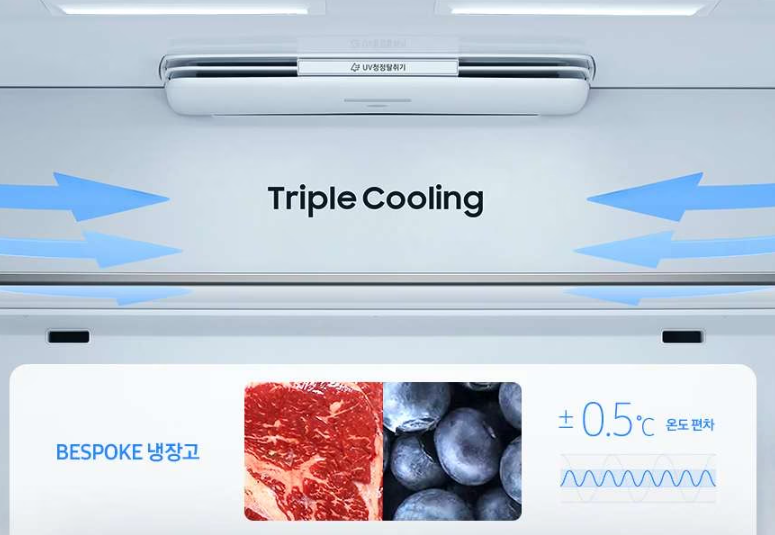 냉장실, 냉동실, 맞춤보관실 각각의 냉각기가 있는 트리플 독립 냉각 기능으로