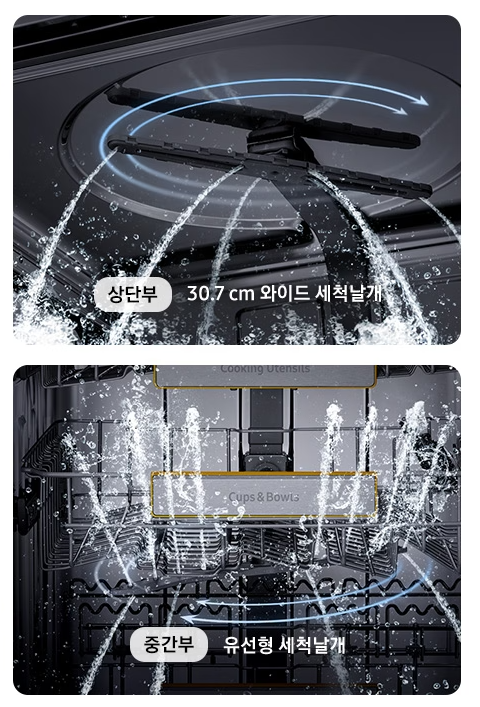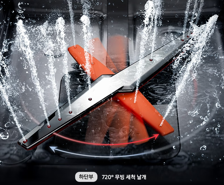 75 ℃ 고온직수 스팀으로 꼼꼼하게 불린 후, 하단의 양방향 동시 구동되는 720° 무빙 세척 날개로 오염이 심한 식기도 깔끔하게 마무리해 줍니다.