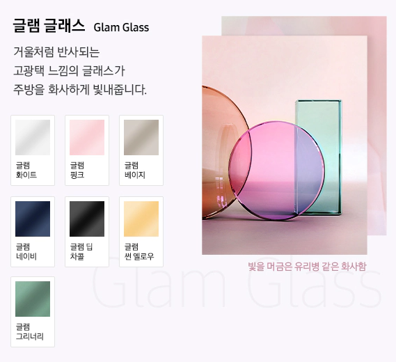 벨벳같은 부드러운 광택과 스크래치에 강한 글래스가 주방에 편안함을 더해줍니다.