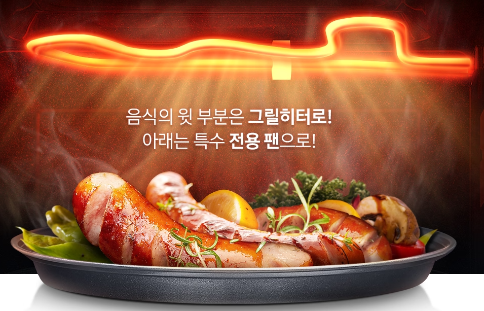 그릴이 겉면을 바삭하게 익혀주고 속은 전자파로 익혀 촉촉해집니다.
