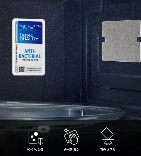 삼성 전자레인지 세라믹 조리실은 독일 항균 인증 기관인