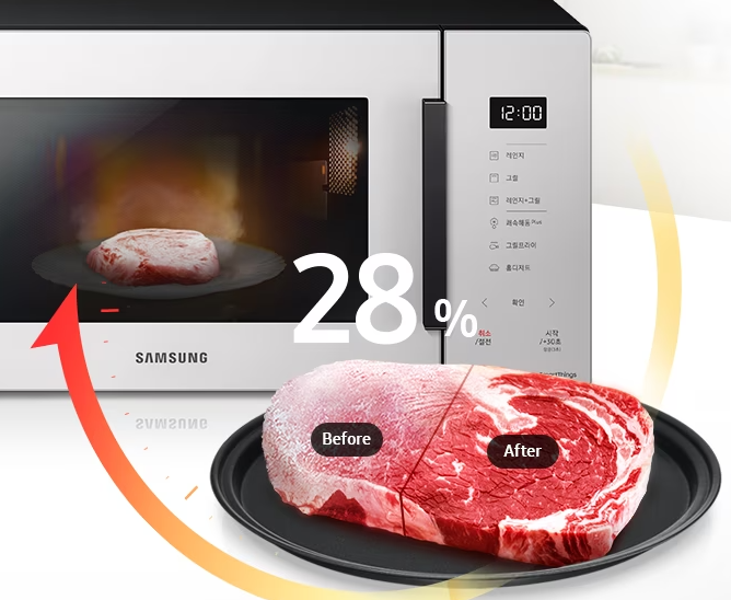 기존 삼성 전자레인지보다 해동 시간이 약 28 % 더 빨라졌어요.