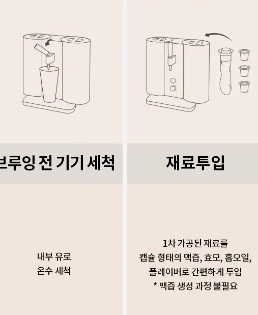 - 세척 시간브루잉 전 세척(5분) / 캡슐 투입구 세척(5분) / 브루잉 후 세척(10분)