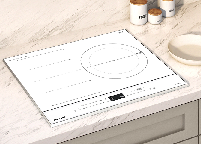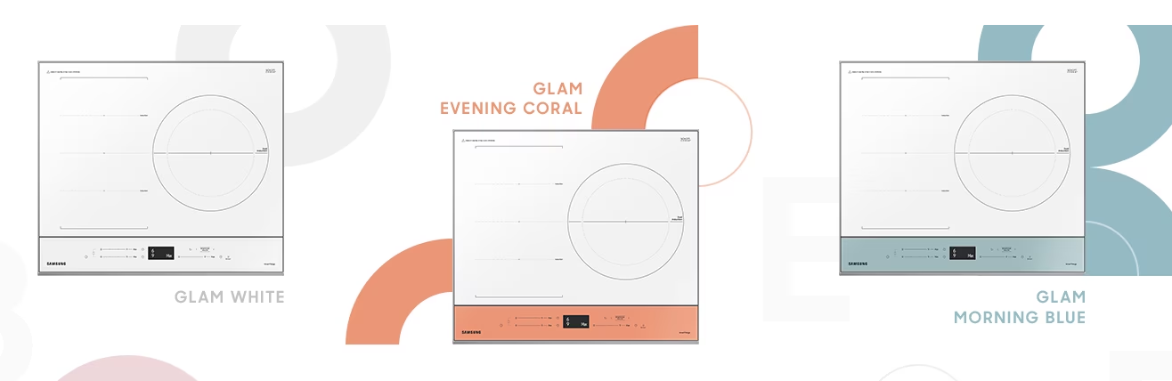 오랫동안 인덕션에 널리 사용된 블랙 컬러 글라스 대신 화사한 순백색 글라스가 공간을 돋보이게 합니다.