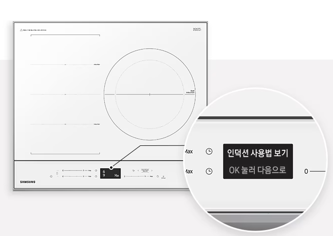 LCD 대화형 알림창을 통해 인덕션의 상태를 쉽게 확인할 수 있습니다.
