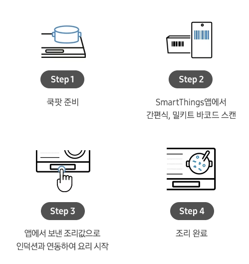 바코드 스캔으로 불조절, 시간 고려 등 고민 필요 없는 원터치 자동 요리가 가능합니다.