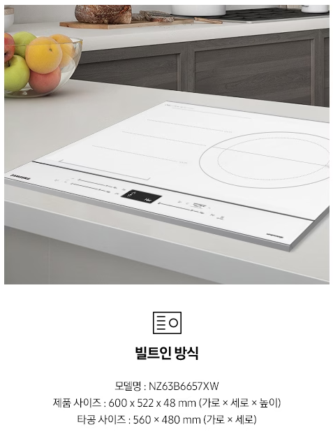 비스포크 인덕션 빌트인 (플렉스존) NZ63B6657XW 상세 스펙