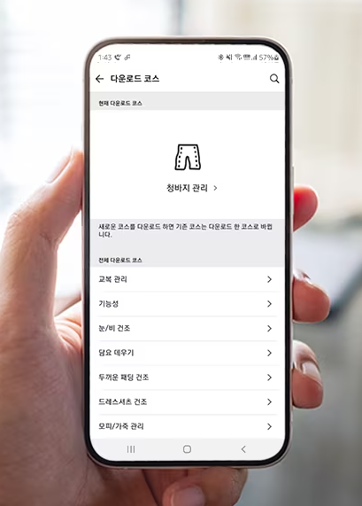 집 밖에서도 간편하게 스타일러를 작동할 수 있고 나에게 필요한 코스도 다운로드 해서 사용해보세요.
