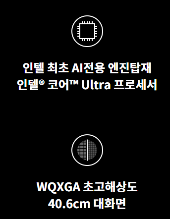 인텔 최초로 AI전용 엔진인 인텔® AI Boost가 탑재되고, 역대 가장 높은 전력 효율을 자랑하는 강력한 퍼포먼스로