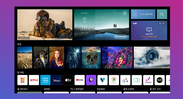 LG 채널, 넷플릭스, 왓챠, 유튜브 등 다양한 앱을 바로 실행하고 지금 인기 있는 콘텐츠, 날씨, 가전 상태까지 한눈에 확인할 수 있어 TV 이상의 즐거움을 드립니다.