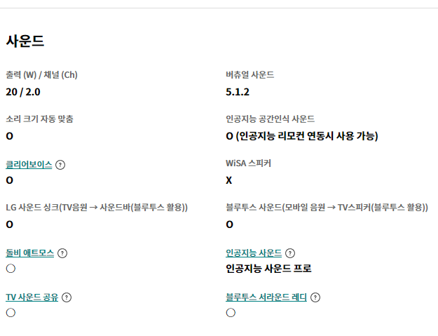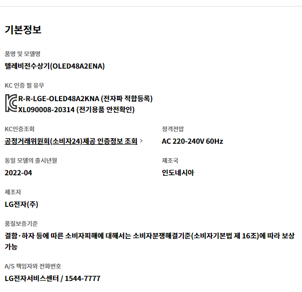 LG 올레드 TV OLED48A2ENA 상세 스펙