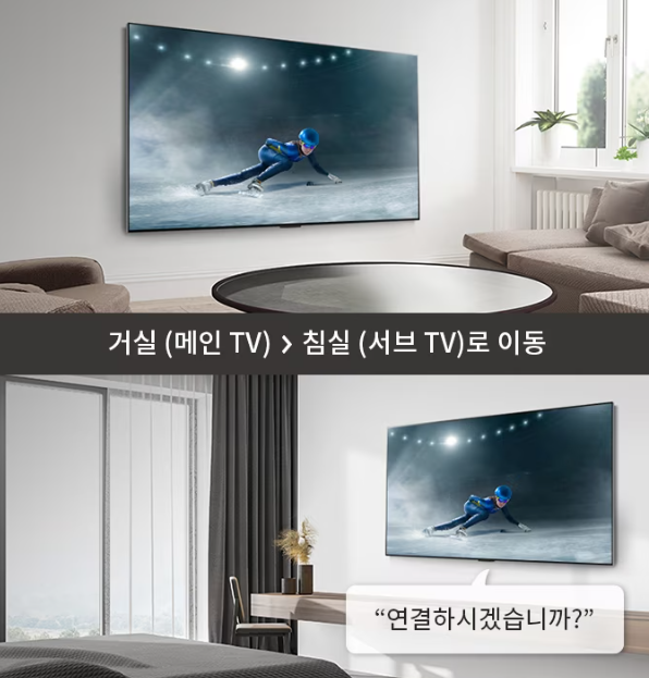 지금 보고 계시는 TV 영상을 같은 네트워크에 연결된 다른 TV에서도 바로 보실 수 있습니다. TV마다 따로따로 IPTV에 가입하거나 안테나를 연결하지 않아도 되니까 경제적이고 편리합니다.