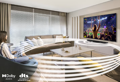 Dolby Audio와 DTS Virtual:X 기술을 지원하는 삼성 사운드바가 웅장하고 입체감 넘치는 사운드의 세계로 초대합니다.
