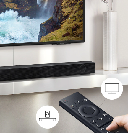 TV 리모컨 하나로 사운드바의 전원, 볼륨, 음향 효과 등