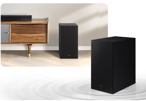 삼성 무선 리어 스피커는 무선 연결로 서라운드 사운드 시스템을 완성해줍니다.