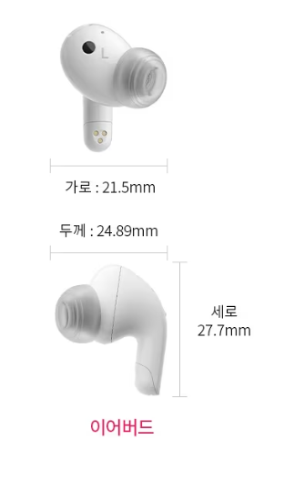 • 크기 (폭x길이x두께, mm)이어버드 : 21.5 x 27.7 x 24.89 mm /