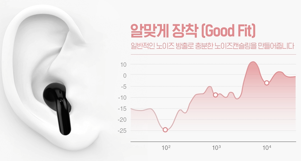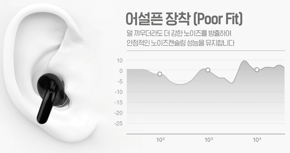 적정한 액티브 노이즈 캔슬링이 작동하여 최적의 ANC성능을 제공 합니다.