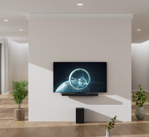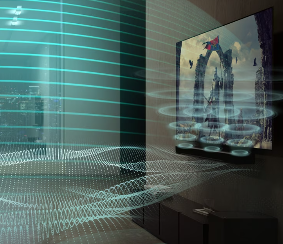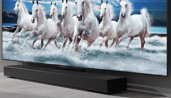 TV 스피커는 중, 고음을 한층 더 또렷하게 표현하고 사운드바는 풍성한 음장감을 더합니다.