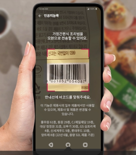 LG ThinQ 앱에서 간편식 제품 바코드만 찍으면가장 맛있는 조리 모드와 시간을 자동으로 설정해