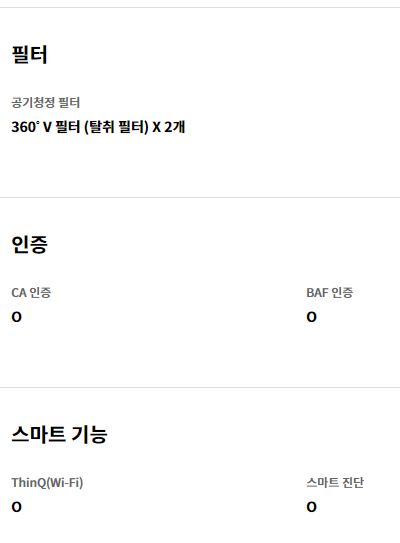 LG 퓨리케어 360˚ 공기청정기 플러스 AS283DWFL 상세 스펙