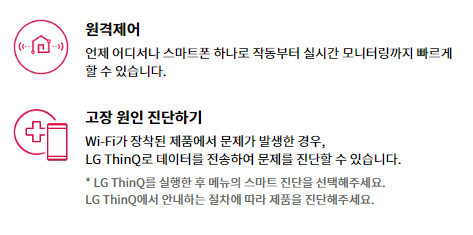 스마트폰, 태블릿의 LG ThinQ 앱을 통해언제 어디서나 실시간으로 상태 확인이 가능합니다.