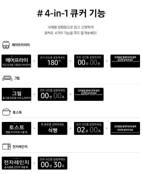 그릴, 에어프라이어, 전자레인지, 토스터 기능이