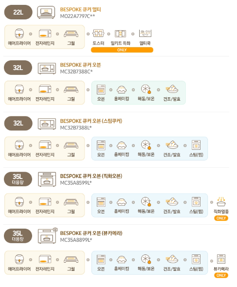 삼성 비스포크 큐커 멀티 오븐(22L) 상세 스펙