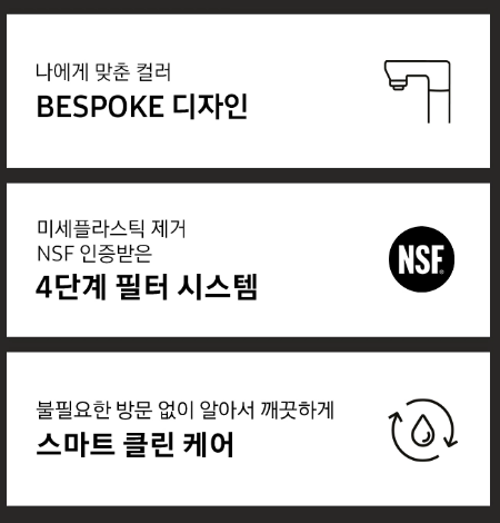 BESPOKE 정수기에는 물이 고일 틈이 없죠.