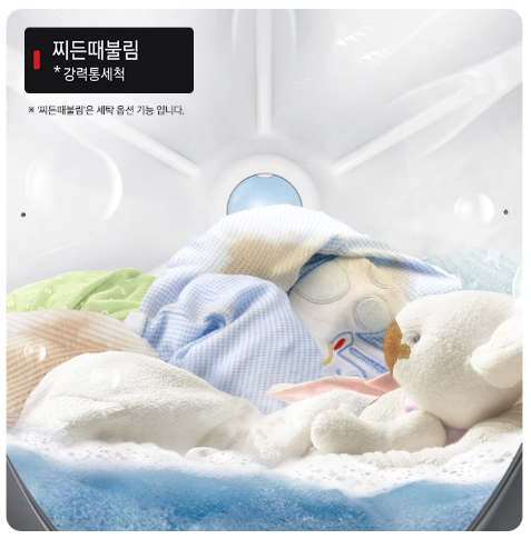 전용세제 없이, 강력한 물살과 통회전으로 세탁조의 위생을 관리할 수 있어요.