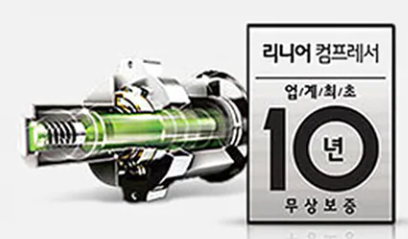 직선 모터로 냉기를 만들기 때문에 불필요한 마찰을 줄여 에너지 효율을 높여줍니다.