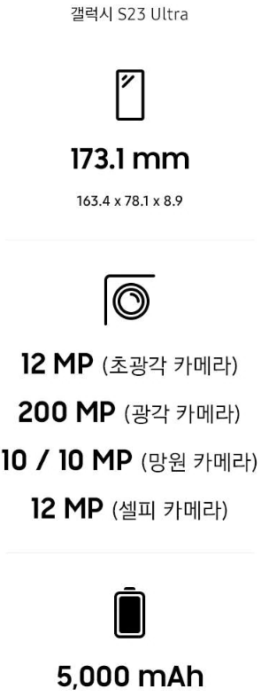 갤럭시 S23 Ultra 자급제 SM-S918NZENKOO 상세 스펙