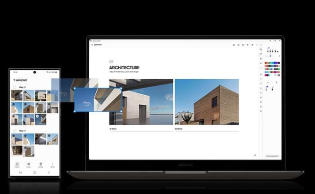 갤럭시 북의 마우스, 키보드, 터치패드를 함께 연결해 사용하는 멀티 컨트롤 방식으로
