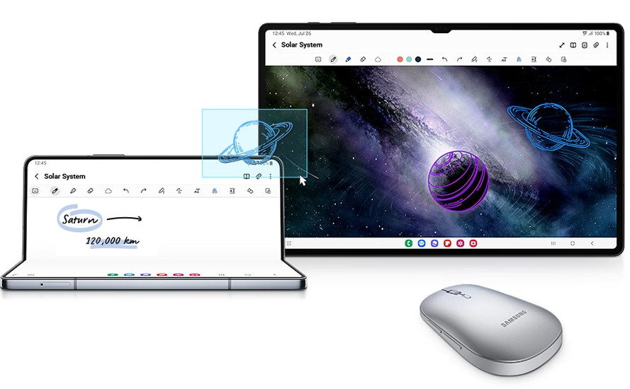 멀티 컨트롤을 사용하면 갤럭시 Z 폴드5, 갤럭시 탭 S9 등의 디바이스를 넘나들며