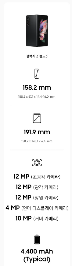 삼성 갤럭시 Z 폴드5 자급제 SM-F946NLBAKOO 상세 스펙